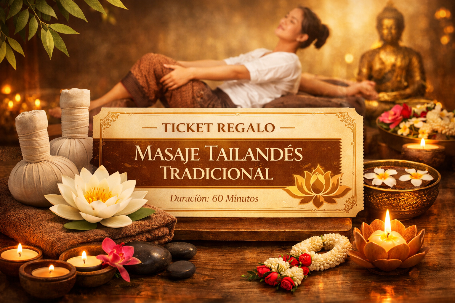 Regala una experiencia de bienestar con este ticket regalo para un masaje tailandés tradicional de aproximadamente 50 minutos. Es una opción práctica para sorprender sin complicarte: tú compras el bono y la persona que lo recibe lo canjea cuando le venga bien.